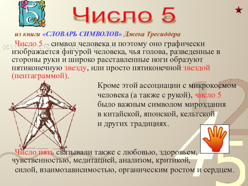 Число пять связывали также с любовью, здоровьем, чувственностью, медитацией, анализом, критикой,