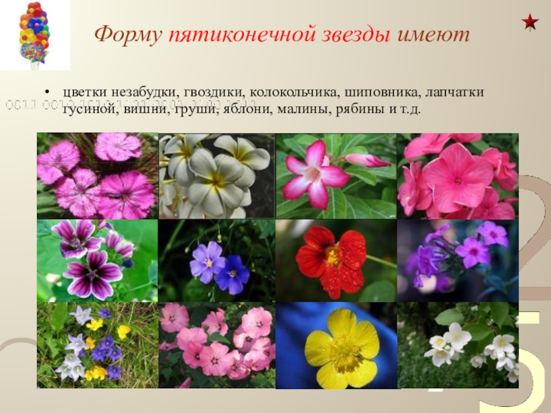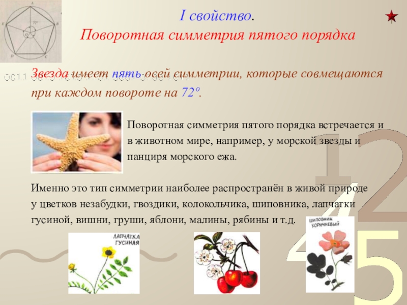 Морские звезды, ежи, цветы в форме пятиконечной звезды