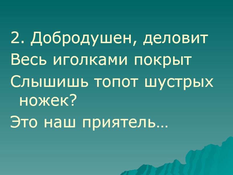 2. Добродушен, деловитВесь иголками покрытСлышишь топот шустрых ножек?Это наш приятель…