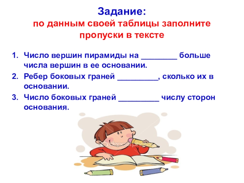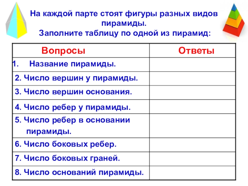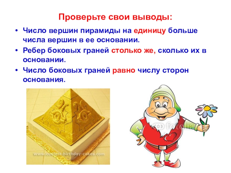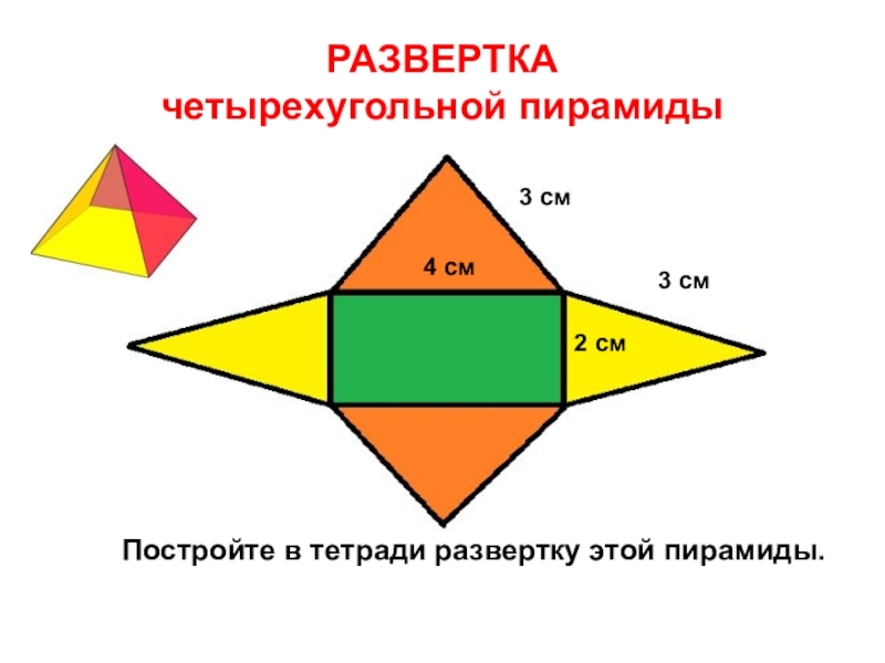 Длина бокового ребра 10 см; длина ребра основания 9 см