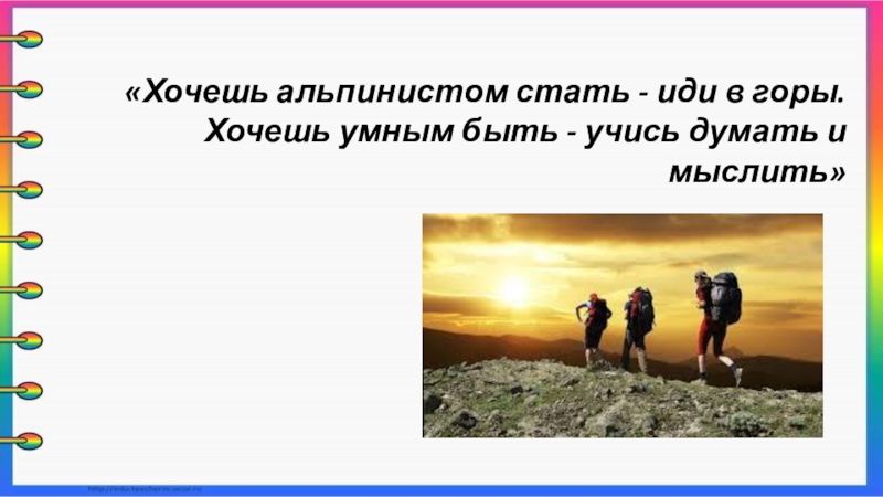 «Хочешь альпинистом стать - иди в горы. Хочешь умным быть - учись думать и мыслить»