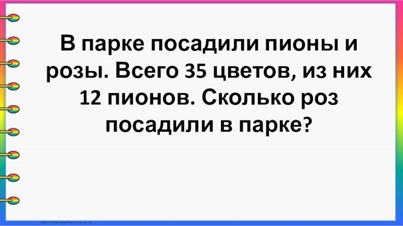 Слайд 9В парке посадили пионы и розы. Всего 35 цветов, из них