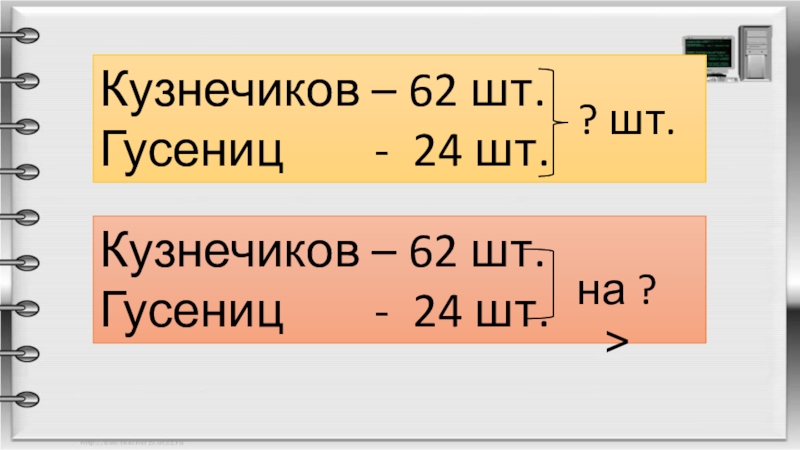 Кузнечиков – 62 шт.Гусениц    - 24 шт.? шт.Кузнечиков – 62 шт.Гусениц