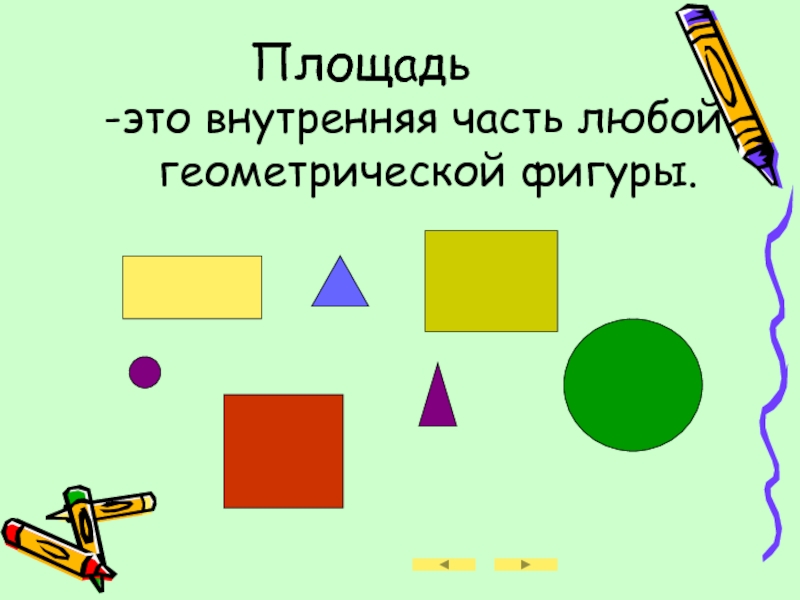 Площадь -это внутренняя часть любой геометрической фигуры.