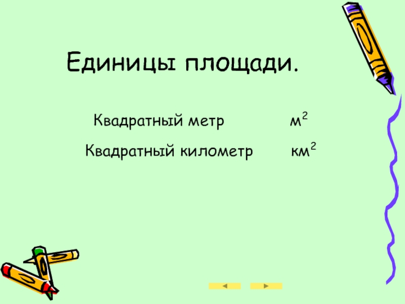 Единицы площади.Квадратный метр       м2Квадратный километр    км2