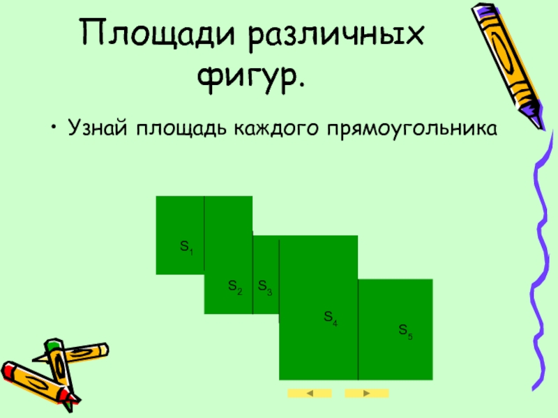 Площади различных фигур.Узнай площадь каждого прямоугольникаS1S2S3S4S5
