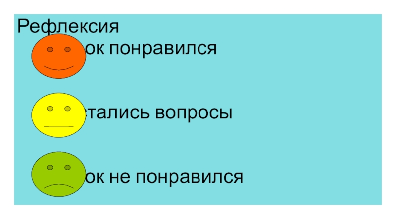 Рефлексия 			Урок понравился   			Остались вопросы   			Урок не понравился