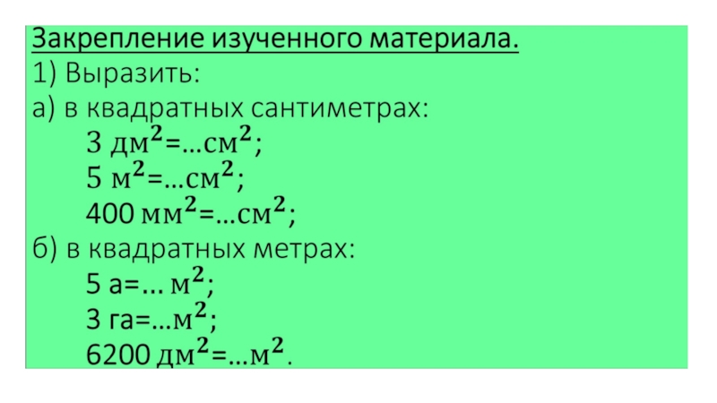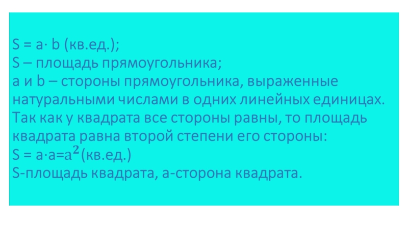 нахождения площади прямоугольника? 3. С какими новыми единицами измерения площади мы познакомились?