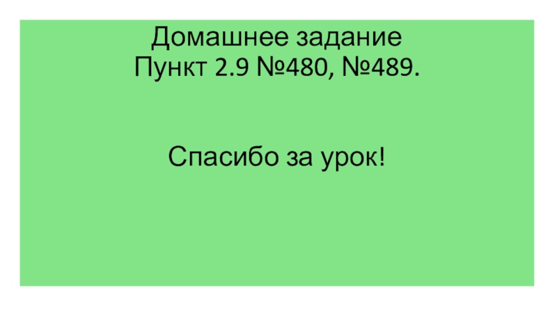 Домашнее задание Пункт 2.9 №480, №489.   Спасибо за урок!
