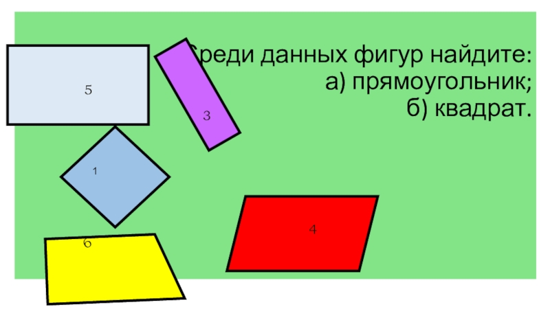 Среди данных фигур найдите:  а) прямоугольник;  б) квадрат.13456