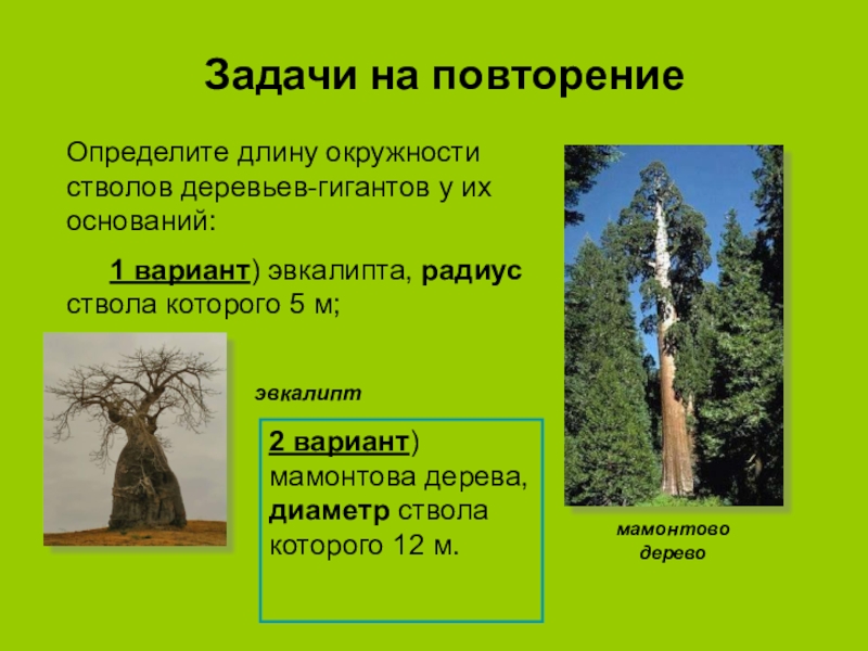 2 вариант) мамонтова дерева, диаметр ствола которого 12 м.