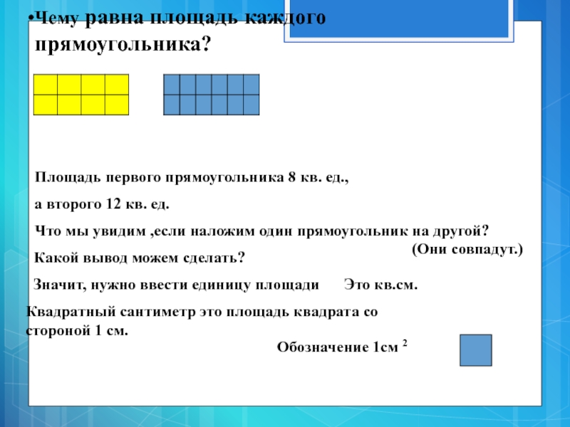 Квадратный сантиметр это площадь квадрата со стороной 1 см.