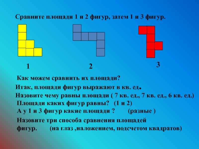 ( 7 кв. ед., 7 кв. ед., 6 кв. ед.)