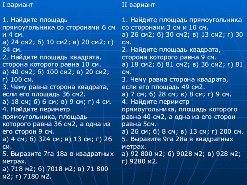 1. Найдите площадь прямоугольника со сторонами 3 см и 10 см.