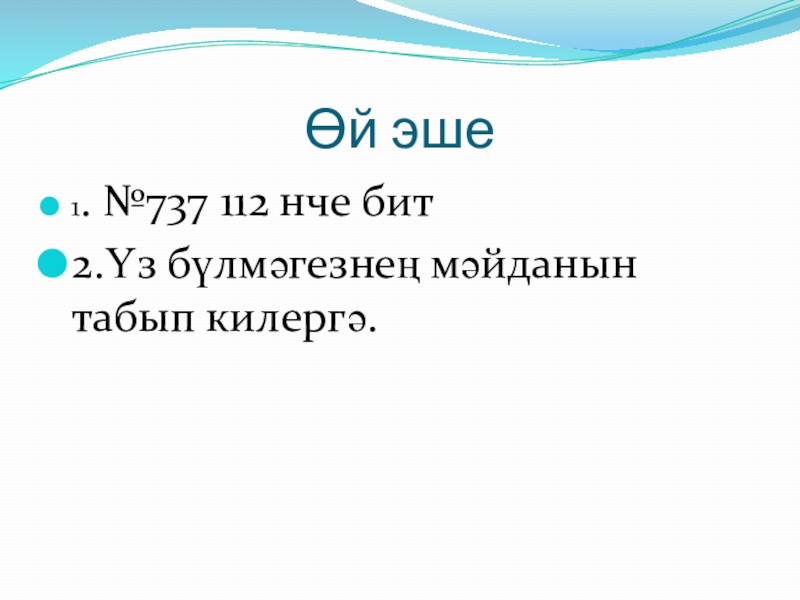 Өй эше1. №737 112 нче бит2.Үз бүлмәгезнең мәйданын табып килергә.