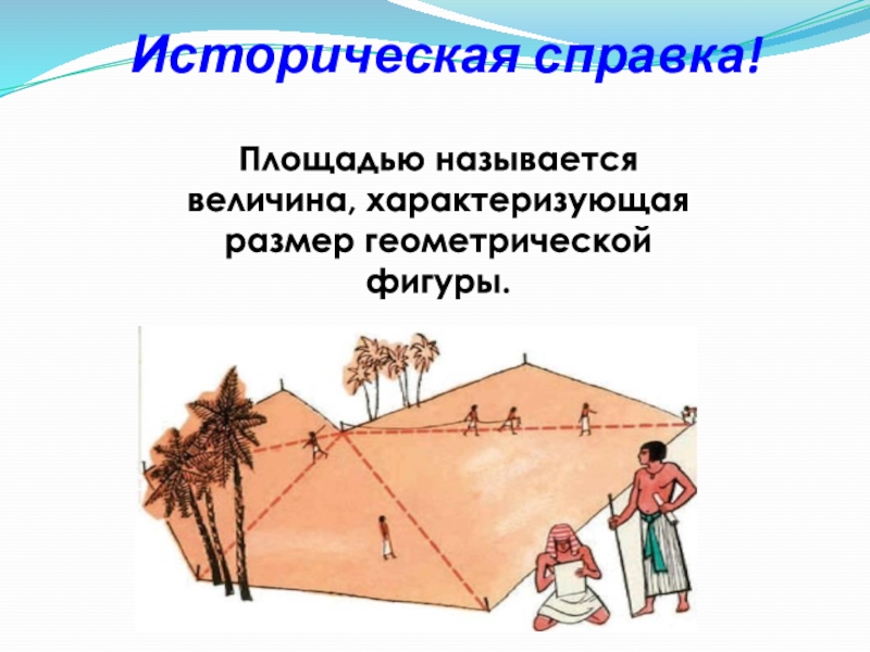 Историческая справка!Площадью называется величина, характеризующая размер геометрической фигуры.