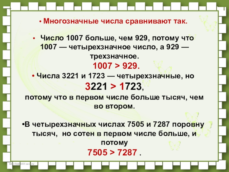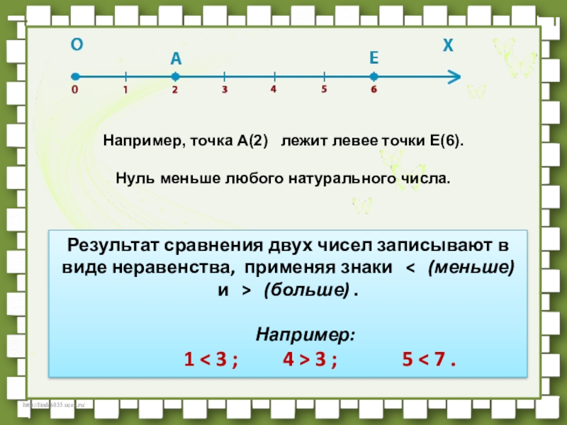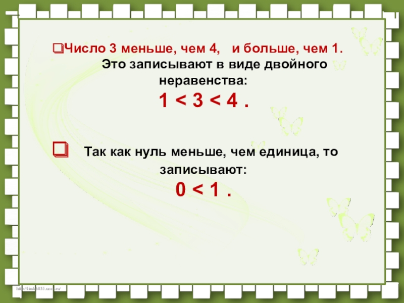 Результат сравнения двух чисел записывают в виде неравенства, применяя знаки < (меньше) и > (больше) .