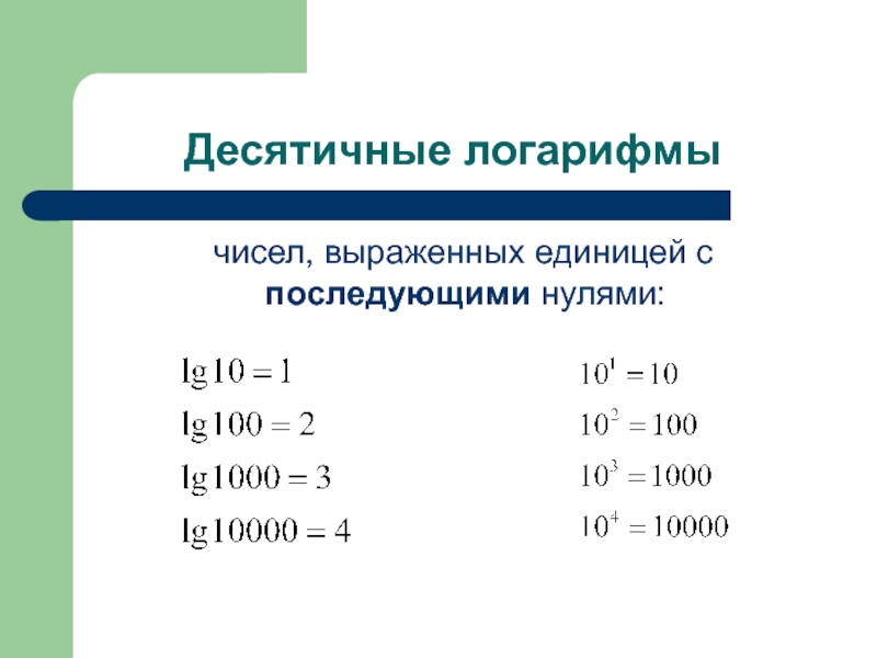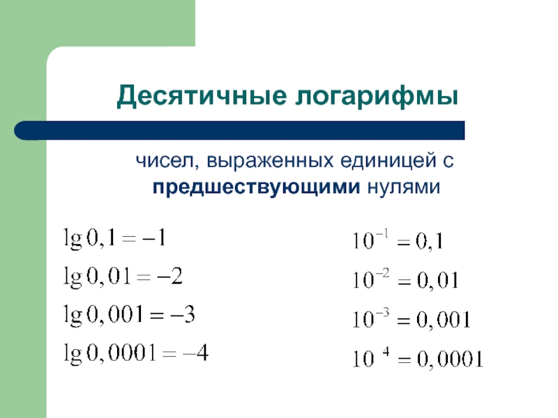 Десятичные логарифмы  чисел, выраженных единицей с предшествующими нулями