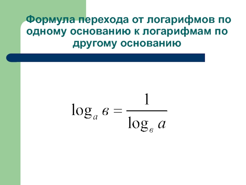 Слайд 9Формула перехода от логарифмов по одному основанию к логарифмам по другому