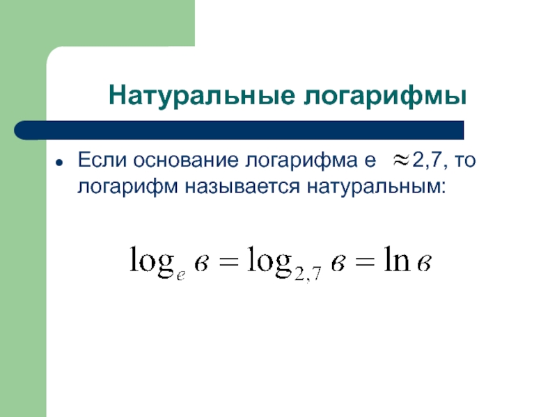 Натуральные логарифмыЕсли основание логарифма е   2,7, то логарифм называется натуральным: