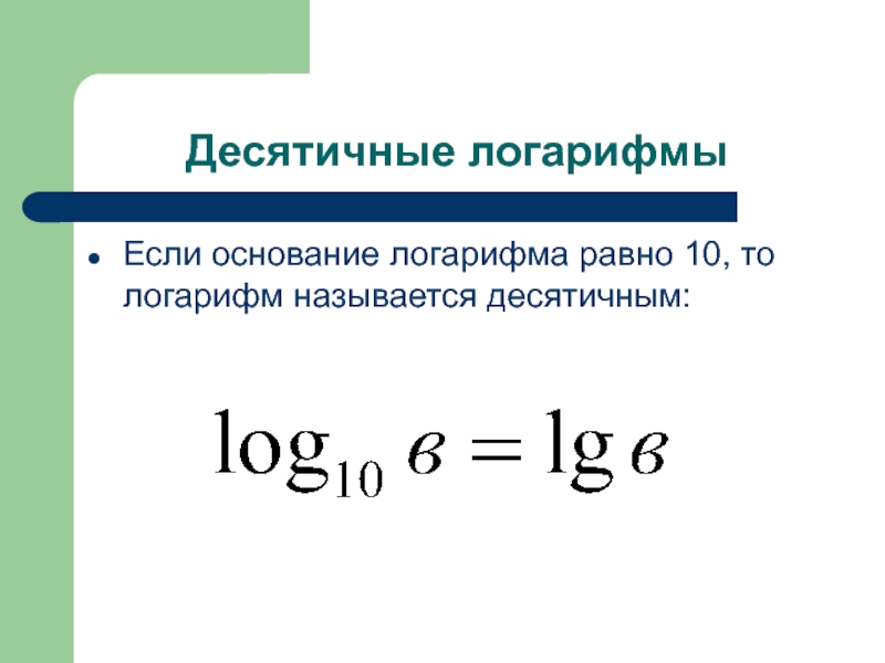 Десятичные логарифмыЕсли основание логарифма равно 10, то логарифм называется десятичным: