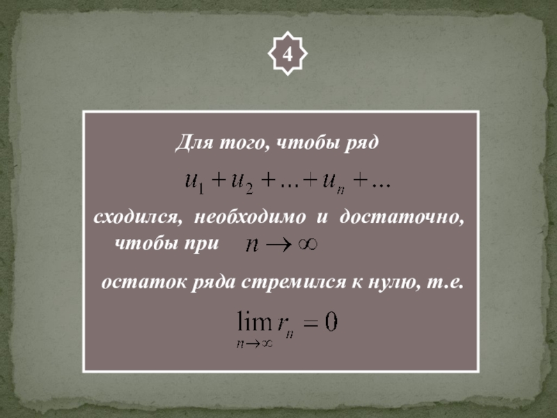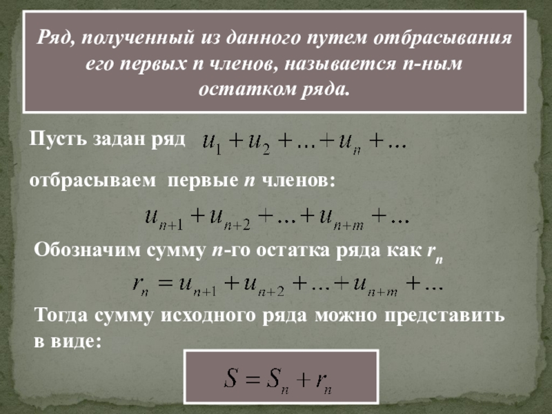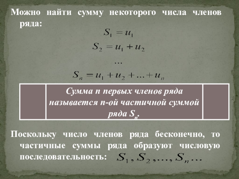 Поскольку число членов ряда бесконечно, то частичные суммы ряда образуют числовую последовательность: