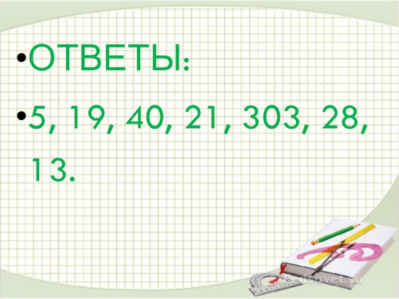Ответы: 5, 19, 40, 21, 303, 28, 13.