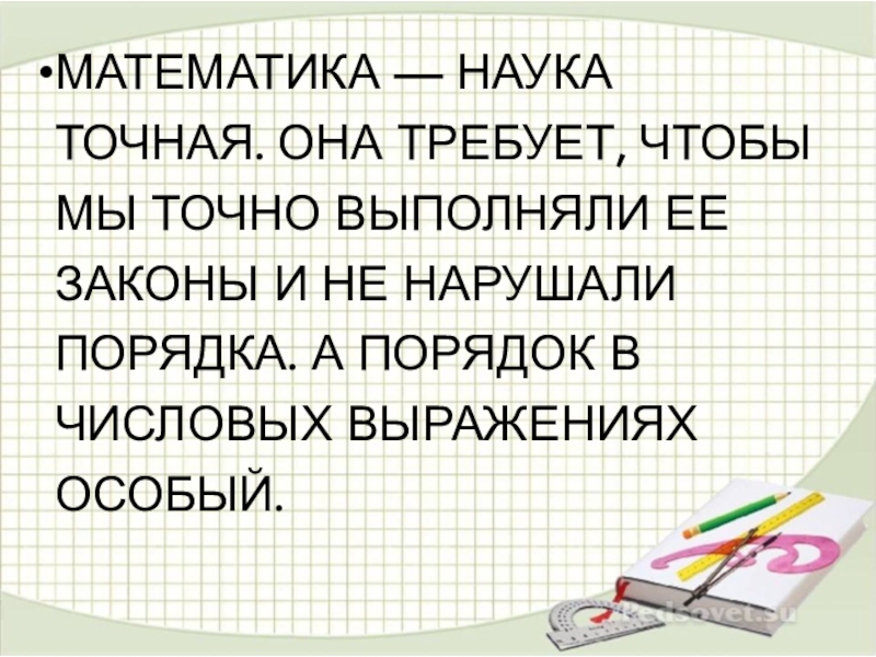Слайд 9Математика — наука точная. Она требует, чтобы мы точно выполняли ее
