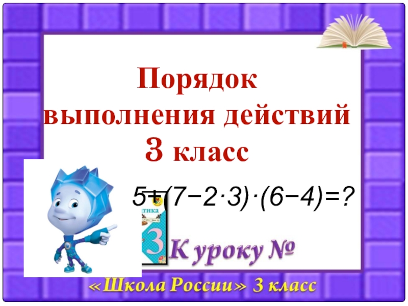 Порядок выполнения действий3 класс5+(7−2·3)·(6−4)=?
