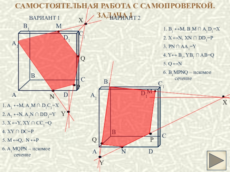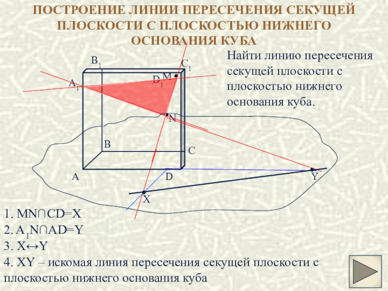 4. XY – искомая линия пересечения секущей плоскости с плоскостью нижнего основания куба