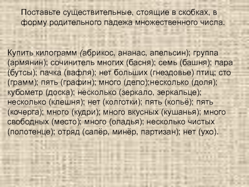Слайд 31Поставьте слова, данные в скобках, в нужной форме. Глаголы поставьте в