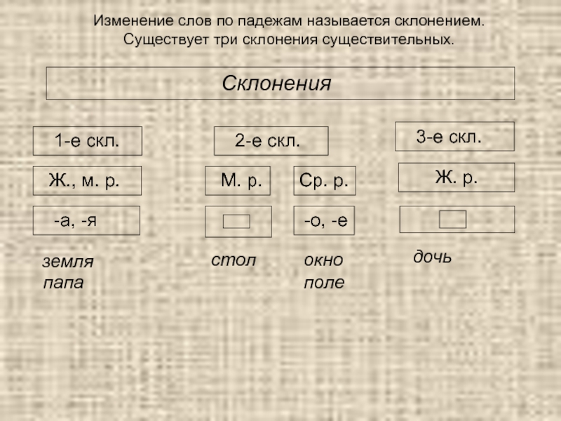 Слайд 29Изменение слов по падежам называется склонением. Существует три склонения существительных.