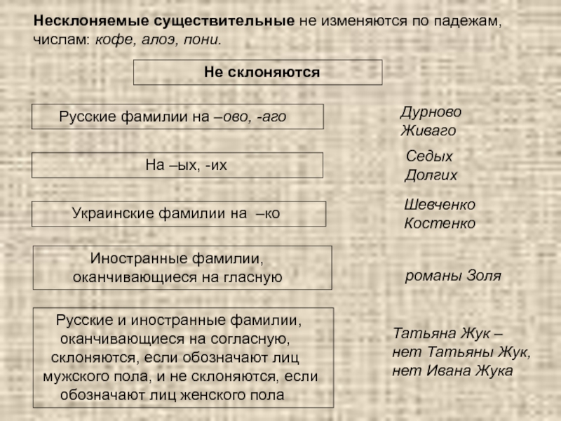 Слайд 30Несклоняемые существительные не изменяются по падежам, числам: кофе, алоэ, пони.