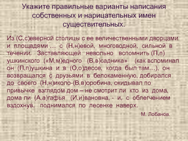 Слайд 8Укажите правильные варианты написания собственных и нарицательных имен существительных.