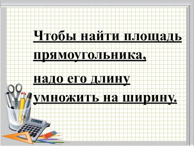 Презентация, доклад по математике на тему Поупражняемся в вычислении площади и повторим пройденное (3 класс)