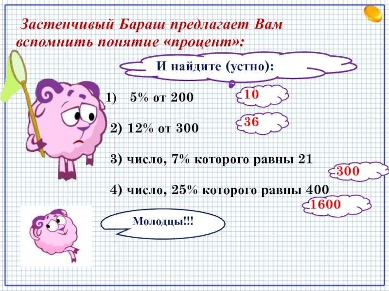 Застенчивый Бараш предлагает Вам вспомнить понятие «процент»: