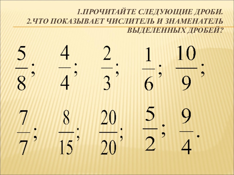 2. Назовите 3 какие-нибудь дроби, у которых числитель равен знаменателю.