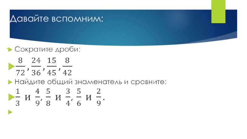 Правильные и неправильные дробиЦель урока: научиться определять правильные и неправильные дроби