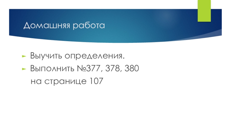 Домашняя работаВыучить определения.Выполнить №377, 378, 380  на странице 107