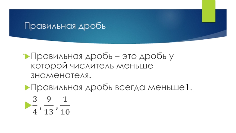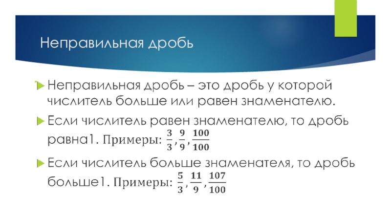Презентация, доклад по математике на тему Правильные и неправильные дроби