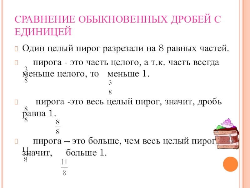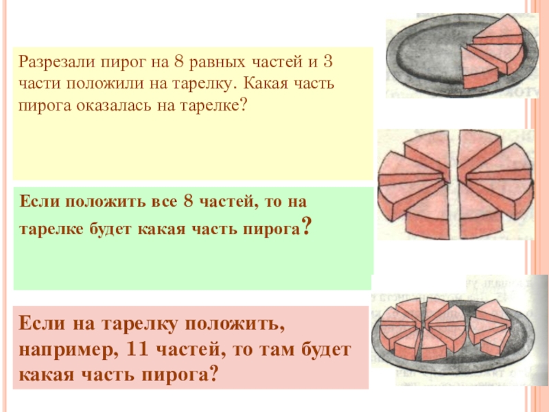Если положить все 8 частей, то на тарелке будет какая часть пирога?