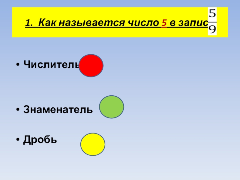 1. Как называется число 5 в записи ЧислительЗнаменательДробь