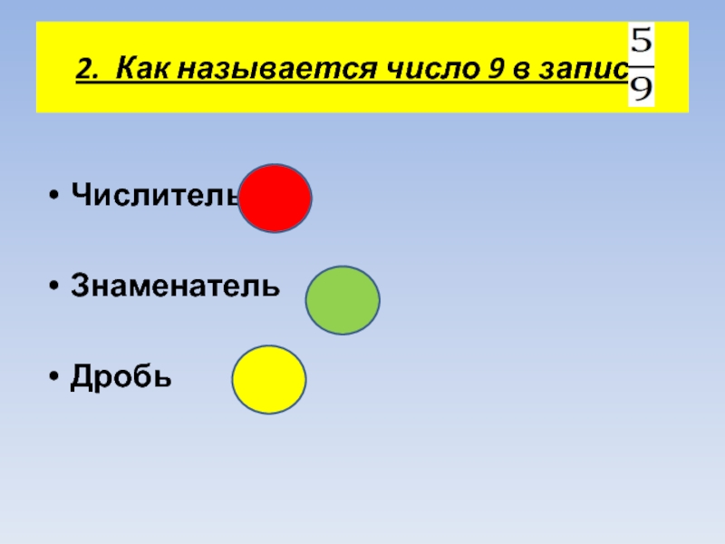 2. Как называется число 9 в записи ЧислительЗнаменательДробь