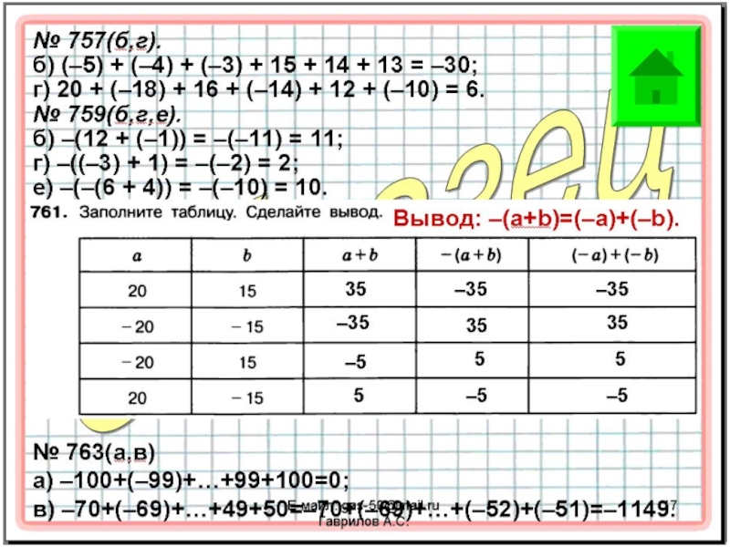 Презентация, доклад по математике на тему Правило вычитания целых чисел (6 класс) Урок 104.