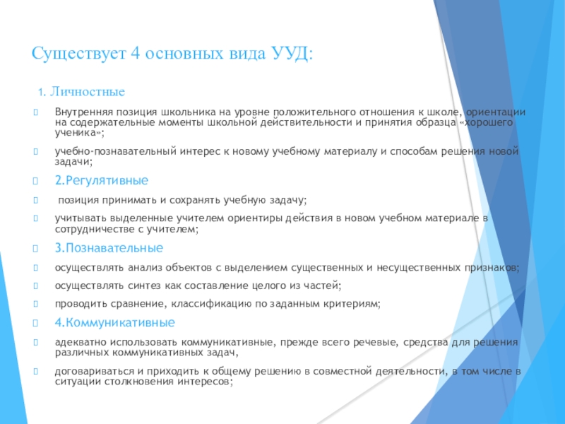 Существует 4 основных вида УУД: