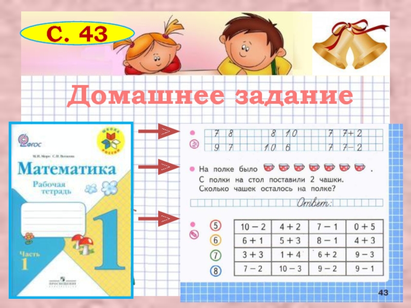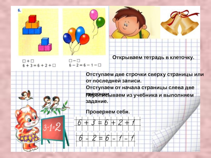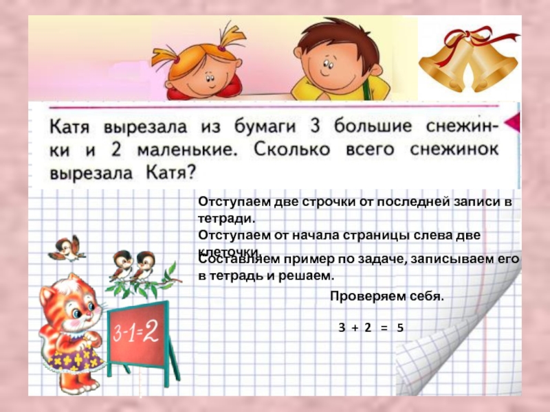 Составляем пример по задаче, записываем его в тетрадь и решаем.