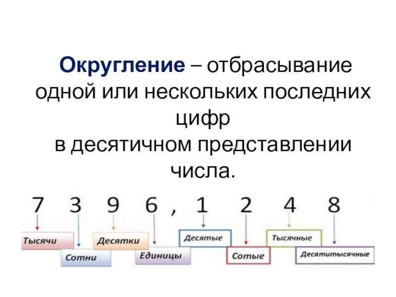 Слайд 4 Округление – отбрасывание одной или нескольких последних цифр