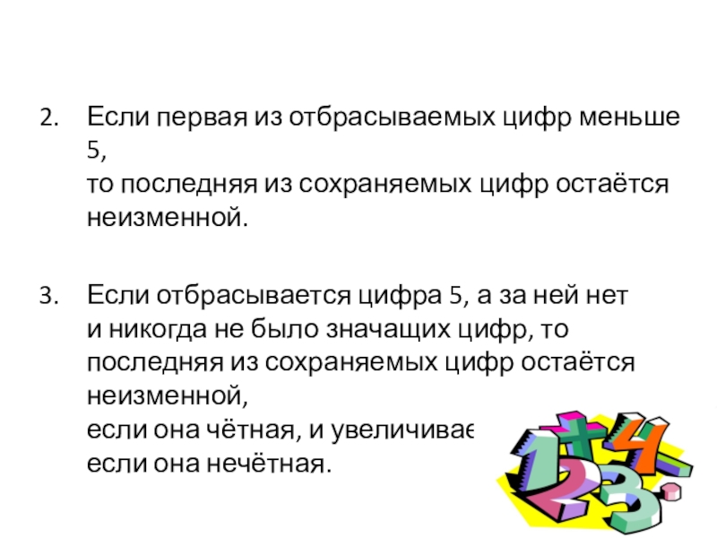 Слайд 6Если первая из отбрасываемых цифр меньше 5,