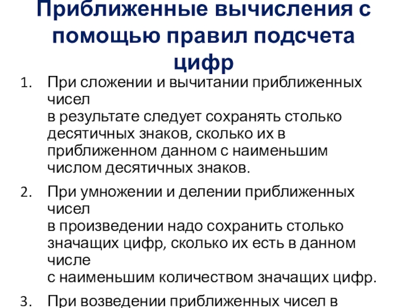 Слайд 8Приближенные вычисления с помощью правил подсчета цифр