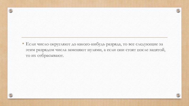 Слайд 5Если число округляют до какого-нибудь разряда, то все следующие за этим